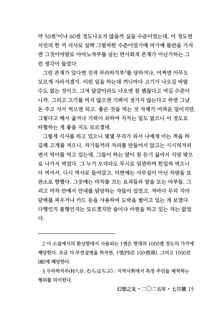 환상의 벗(幻想之友) 2025년 7월호(제1호, 창간호)에 투고한 원고인 마차철도 기관사 세키반키 씨의 일일(馬車鉄道機関士赤蛮奇之一日・一)입니다.