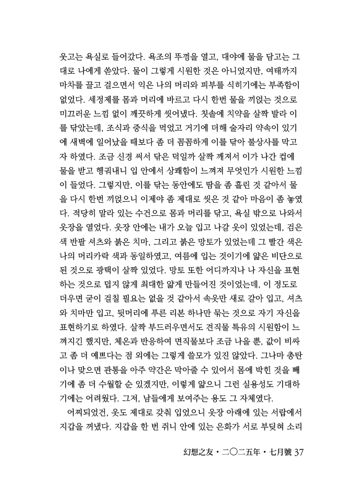 그렇지만, 이를 닦는 동안에도 땀을 좀 흘린 것 같아서 물을 다시 한번 끼얹으니 이제야 좀 제대로 씻은 것 같아 마음이 좀 놓였다.