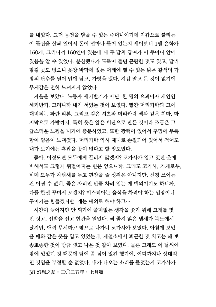 그저 동전을 담을 수 있는 주머니이기에 지갑으로 불리는 이 물건을 살짝 열어서 돈이 얼마나 들어 있는지 세어보니 1엔 은화가 160개, 그러니까 160엔이 있는데 내 두 달치 급여가 이 주머니 안에 있음을 알 수 있었다.
