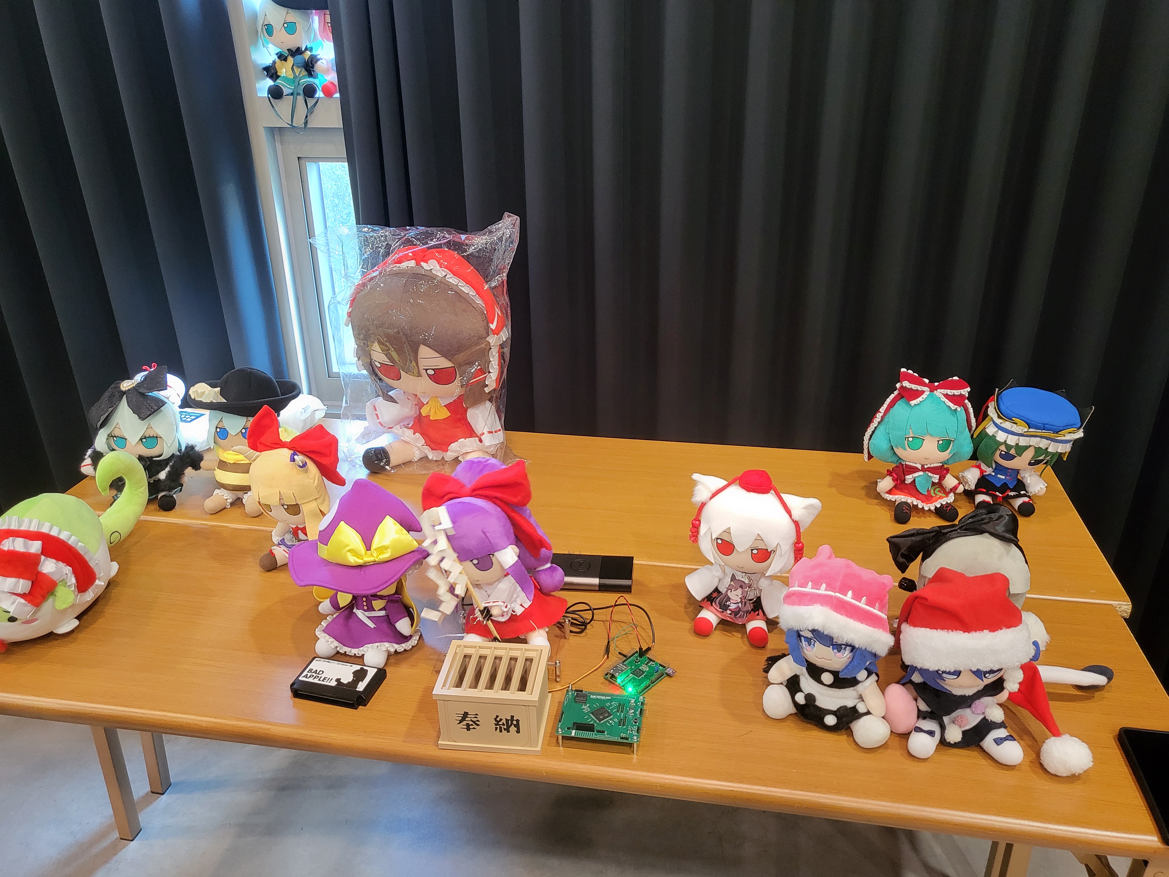 구작 레이무 후모(고헤이를 들고 있는 보라색 머리카락 인형)에는 모터가 달려 있어서 계속 양옆으로 왔다갔다 하는 것이 귀여웠습니다. 의식을 행하고 있는 모양새였어요.